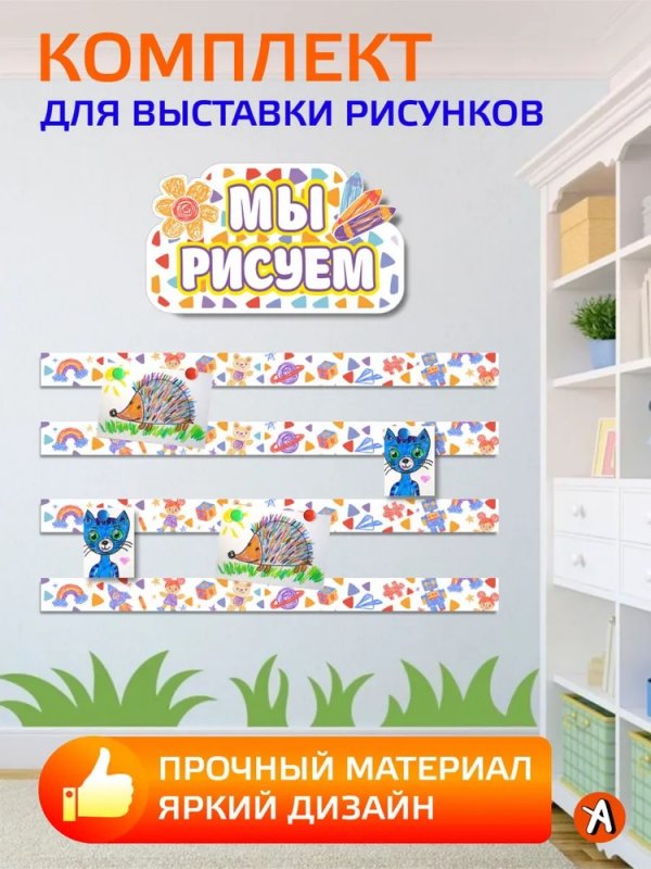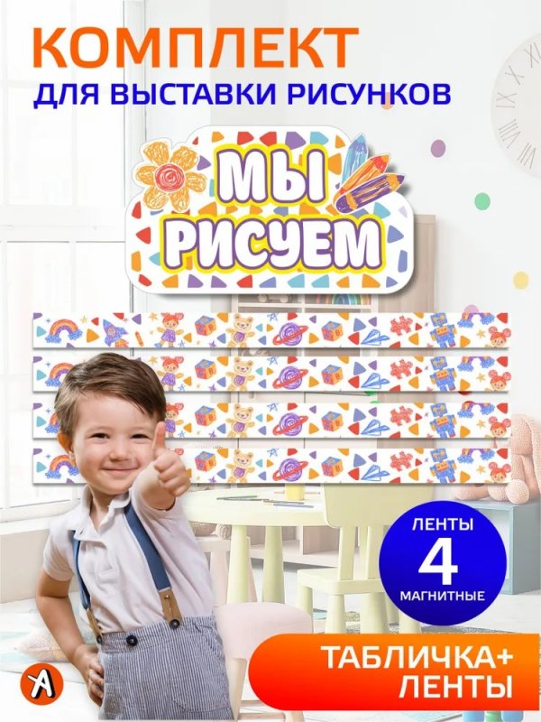 Главная / Каталог / Наклейки и магниты / Комплект для выставки рисунков для детского сада " Мы рисуем", творческий уголок: магнитные ленты 100*7см + заголовок 50*30см