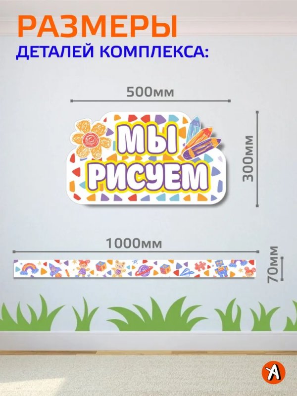 Комплект для выставки рисунков для детского сада " Мы рисуем", творческий уголок: магнитные ленты 100*7см + заголовок 50*30см