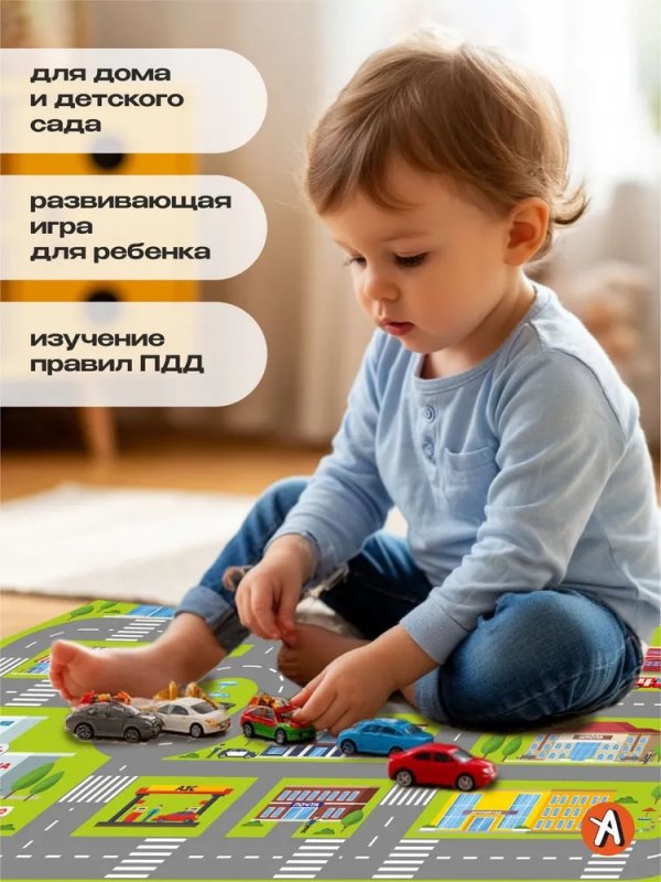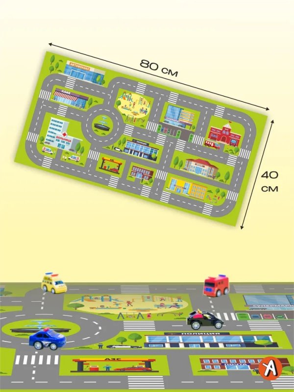 Формат: 40 x 80 см Достаточно большой, чтобы развернулась интересная игра с несколькими машинками и фигурками, и достаточно компактный, чтобы вписаться в интерьер.