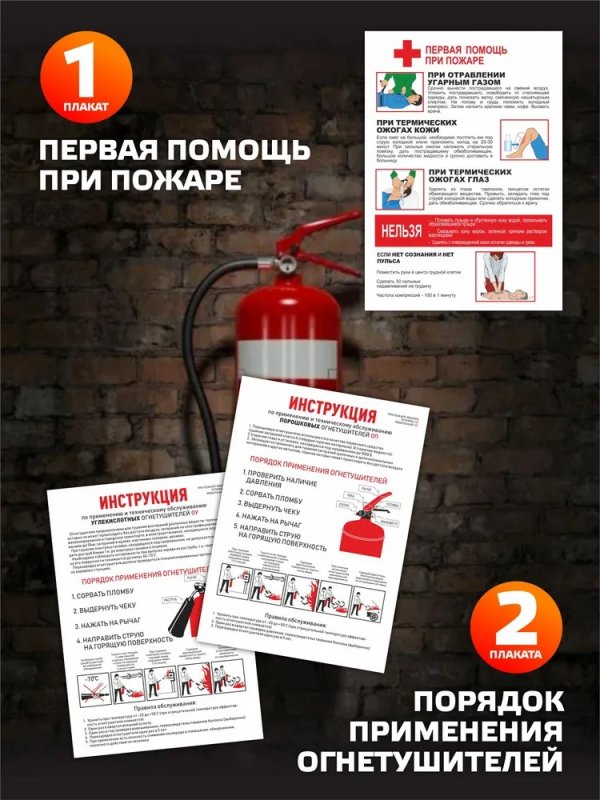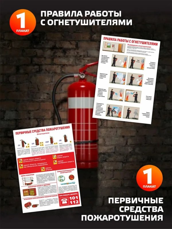 1 плакат "Правила работы с огнетушителями" Детальные правила эксплуатации и ухода за средствами тушения огня.