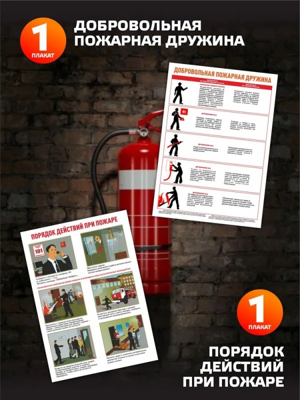 1 плакат "Порядок действий при пожаре" Четкие инструкции по поведению при пожарной опасности.