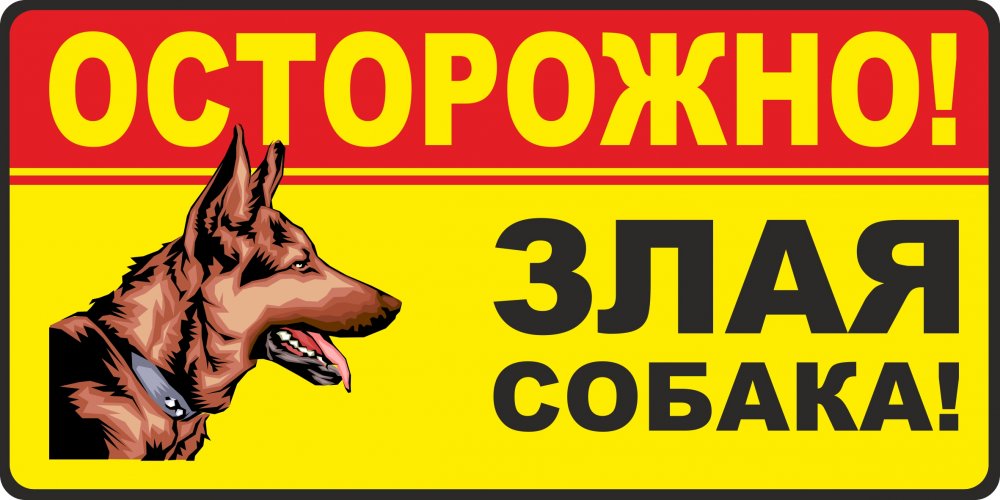 06 Табличка "Злая собака" немецая овчарка, 500х250мм., пластик, ламинация