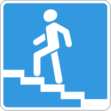 Устанавливается изображением навстречу движению основных пешеходных потоков у лестничных сходов пешеходных мостов и путепроводов.