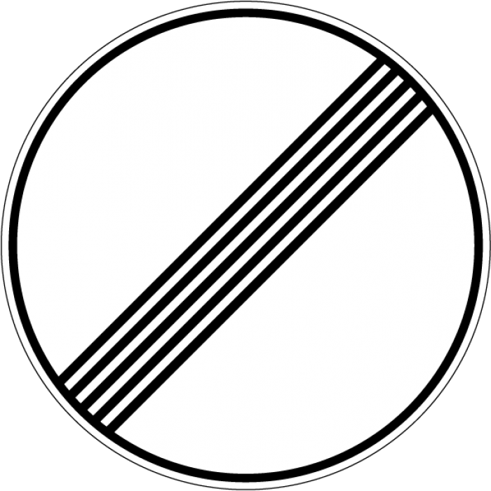 Отменяет действие следующих запрещающих знаков (установленных вместе или последовательно): 1) 3.16 Ограничение минимальной дистанции; 2) 3.20 Обгон запрещен; 3) 3.22 Обгон грузовым автомобилям запрещен; 4) 3.24 Ограничение максимальной скорости; 5) 3.26 Подача звукового сигнала запрещена; 6) 3.27 Остановка запрещена; 7) 3.28 Стоянка запрещена; 8) 3.29 Стоянка запрещена по нечетным числам месяца; 9) 3.30 Стоянка запрещена по четным числам месяца.