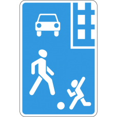 В жилой зоне преимущество имеют пешеходы, движение которых разрешается не только по тротуарам, но и по проезжей части.