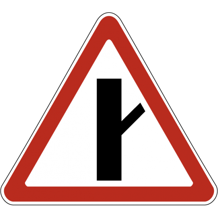 Предупреждает о близости примыкания второстепенной дороги справа.