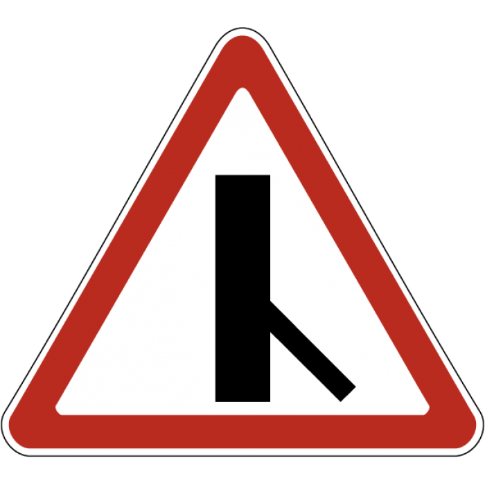 Предупреждает о близости примыкания второстепенной дороги справа.