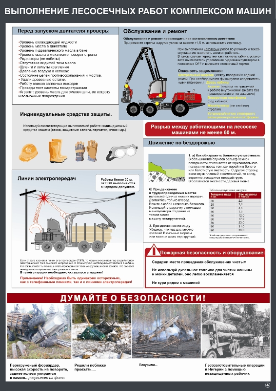 Плакаты "Охрана труда при выполнении лесосечных работ", формат А2, 4 листа, ламинация.