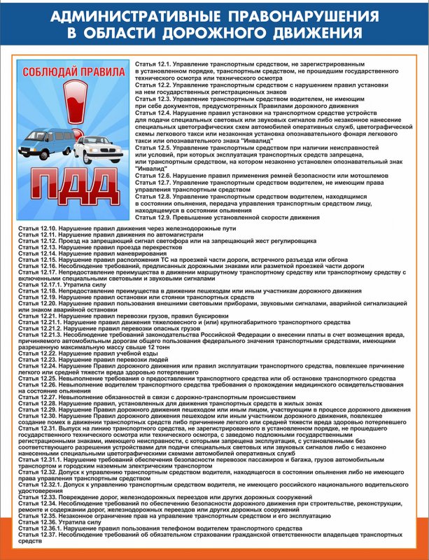 Главная / Каталог / Плакаты / Плакат "Административные правонарушения в области дорожного движения"