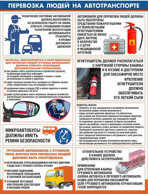 Плакат "Перевозка людей на автотранспорте". Формат А1, А2. Ламинация.