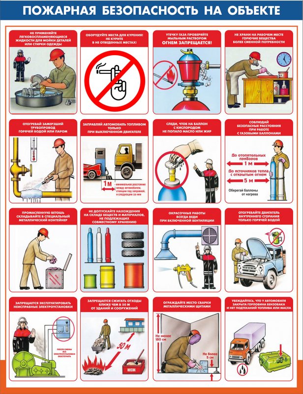 На плакате изображена инструкция по пожарной безопасности на объекте