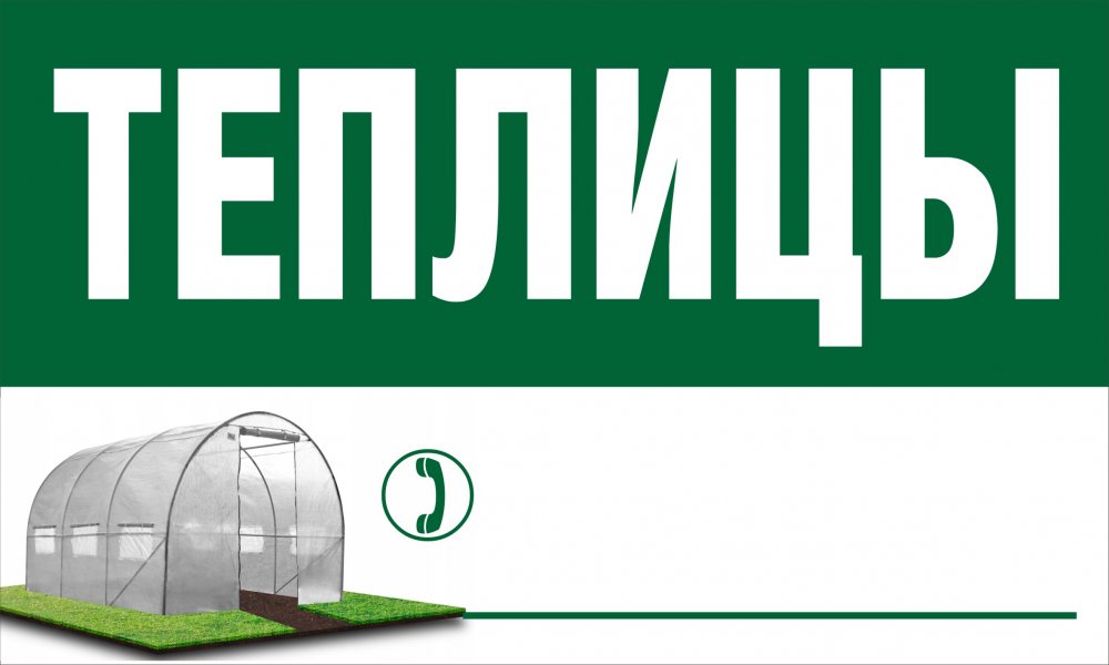 Рекламная табличка - аншлаг "Теплицы" изготавливается на поликарбонате толщиной 4-6 мм.