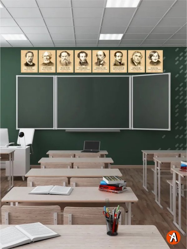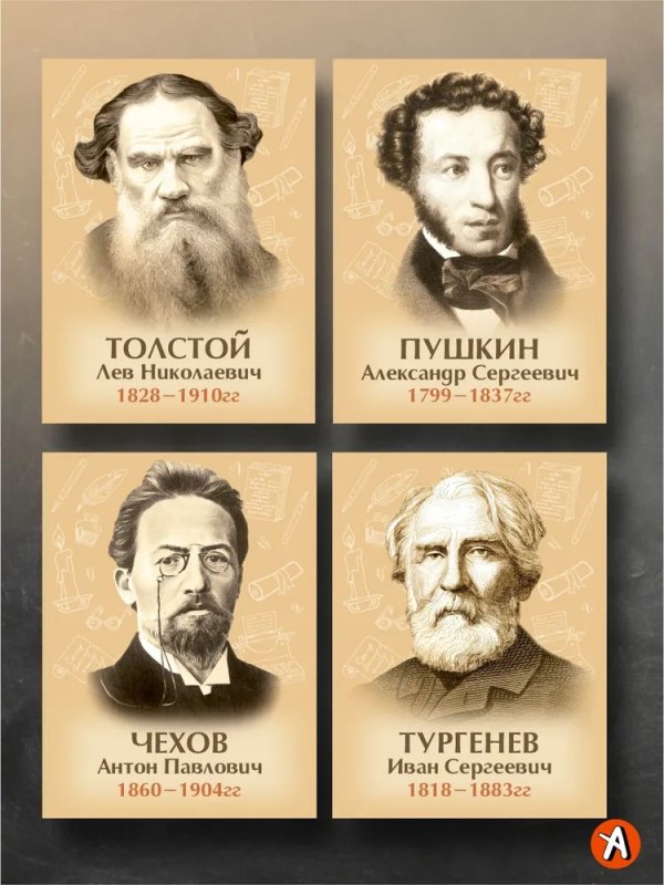 Портреты русских писателей. Комплект 8 штук 30х40 на пластике