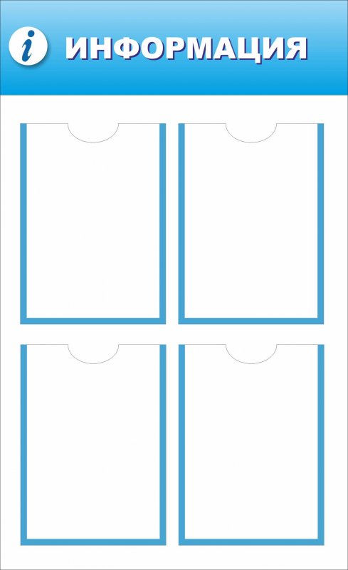 Стенд Информация 550х900 мм, пластик 3 мм, карманы А4 плоские или объемные - 4 шт.
