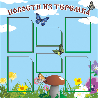 Стенд в детский сад "Новости из теремка" 850х850 мм, пластик 3 мм, карманы А4 плоские - 4 шт., карманы А5 плоские - 2 шт.