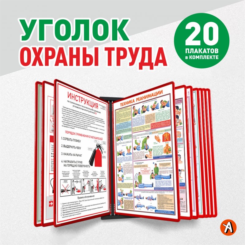 Готовый уголок по охране труда в виде перекидной системы в комплекте с 20 плакатами. В комплекте перекидная система на 10 рамок формата А4 и 20 плакатов: 1 плакат "Охрана труда" 3 плаката "Пожарная безопасность" 2 плаката " Компьютер и безопасность" 4 плаката "Электробезопасность" 2 плаката "Порядок применения огнетушителей" 6 плакатов "Оказание первой помощи" 2 плаката "Антитеррор, ГО и ЧС" Формат : А4. Долговечен и не деформируется в процессе эксплуатации. Ориентация: книжный Размер постера (мм): 210х297