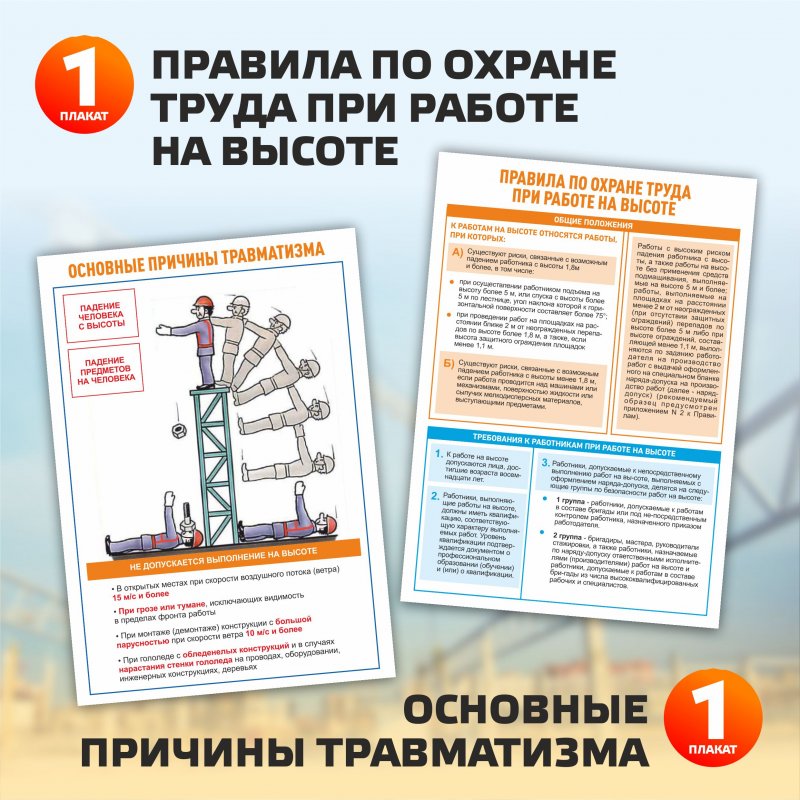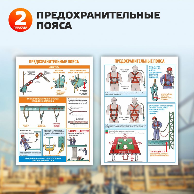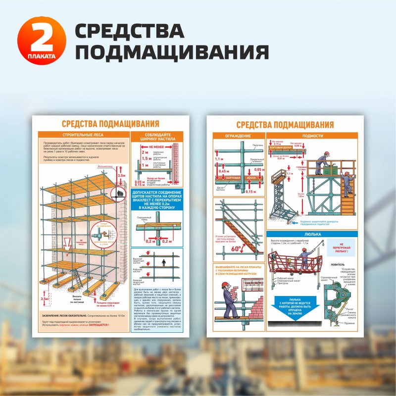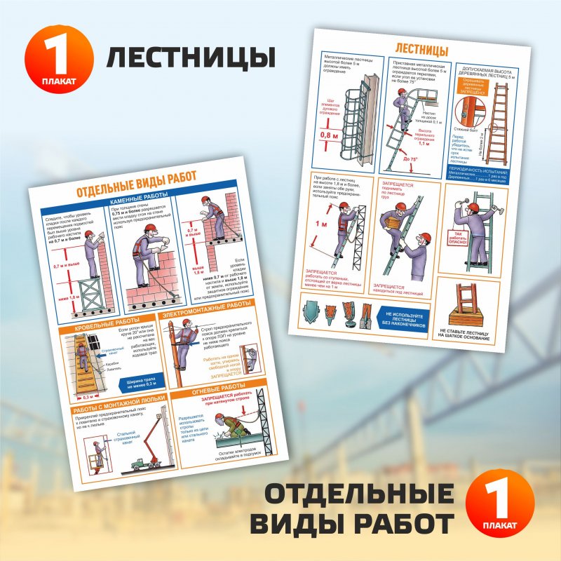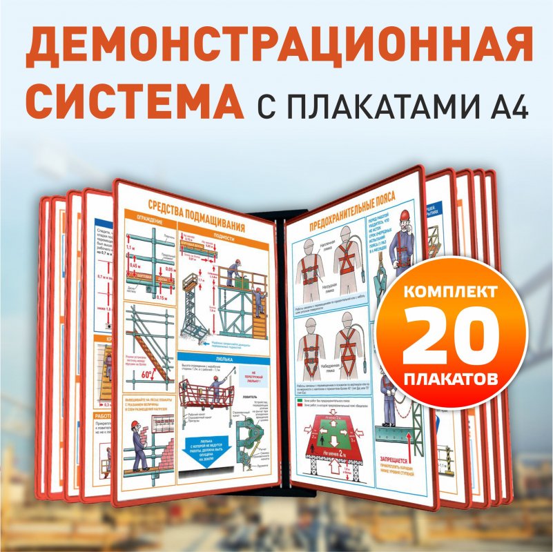 Готовый уголок по охране труда для строителей в виде перекидной системы в комплекте с 20 плакатами: