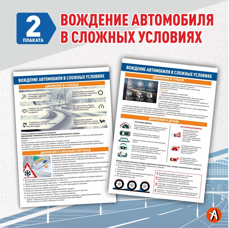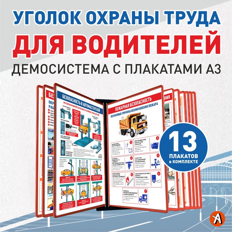 Готовый уголок по безопасности для водителей в виде перекидной системы в комплекте с 13 плакатами: