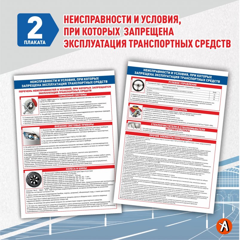 2 плаката "Неисправности и условия, при которых запрещена эксплуатация транспортных средств"