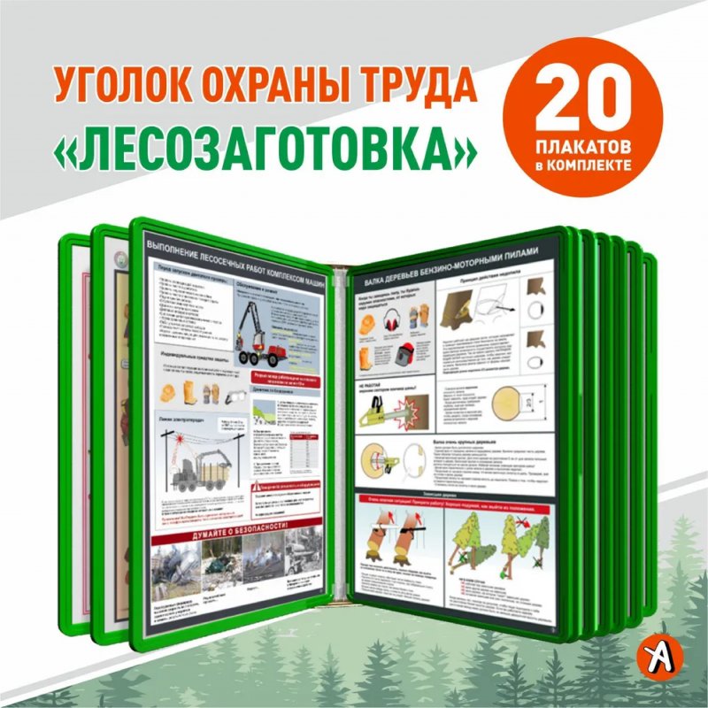 Уникальный уголок охраны труда по лесозаготовке. Включает в себя 20 плакатов со следующей информацией: 6 плакатов "Оказание первой помощи" 4 плаката "Охрана труда при выполнении лесосечных работ" 2 плаката "Пожарная безопасность в лесах" 1 плакат "Охрана труда при деревообработке" 4 плаката "Охрана труда" 1 плакат "Охрана труда на автотранспорте" 2 плаката "Охрана труда при проведении сварочных работ" Долговечен и не деформируется в процессе эксплуатации.