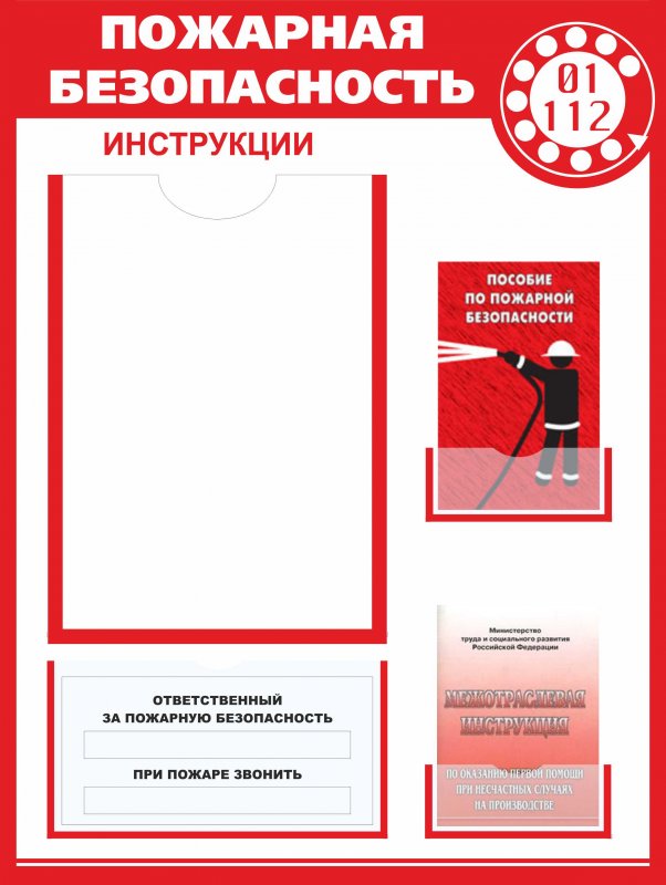 Стенд "Пожарная безопасность" под инструкции 450х600 мм, пластик 3 мм, инструкции оплачиваются отдельно!