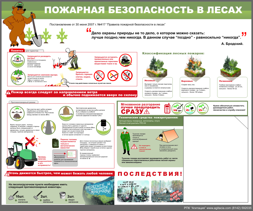 Стенд "Пожарная безопасность в лесах", 900х750 мм, пластик 3мм, карман А4 плоский - 1 шт.