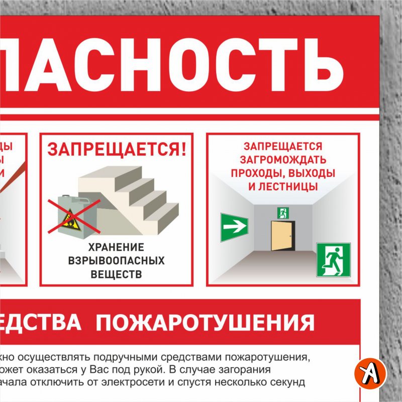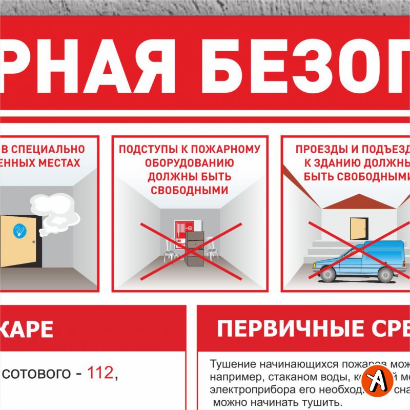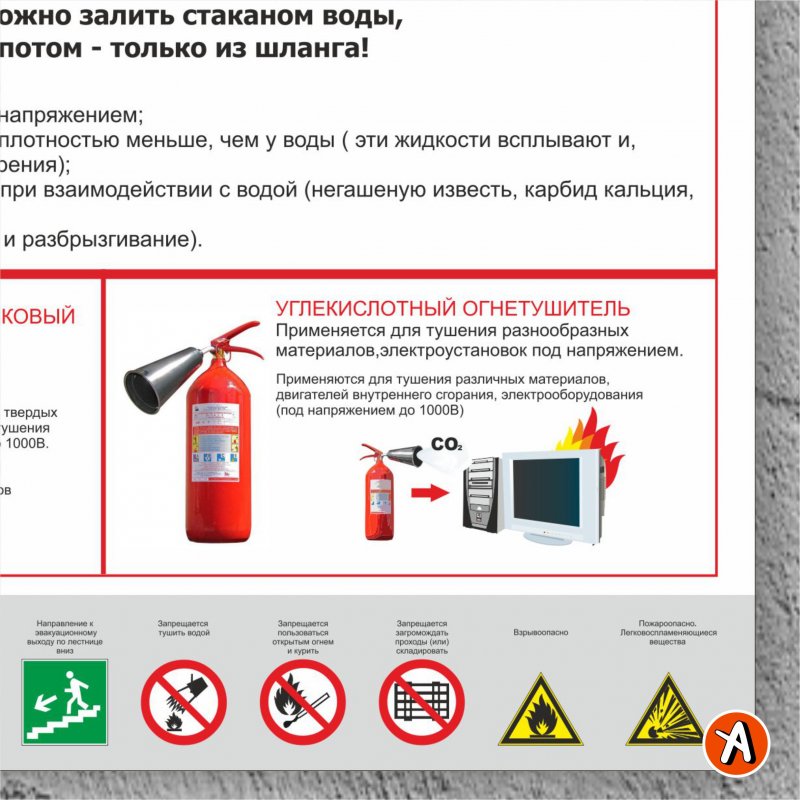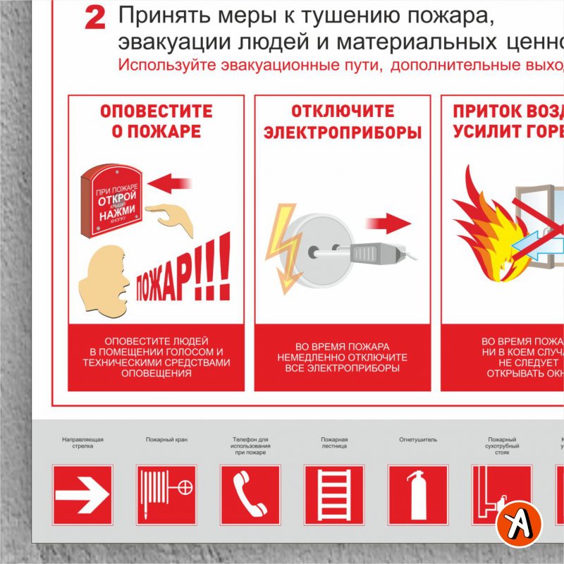Кроме того, на нем размещена информация о первичных средствах пожаротушения, которые должны быть в каждом здании, и советы по эффективному тушению огня.