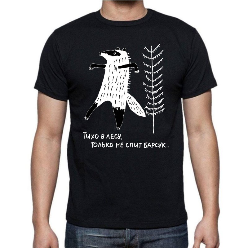 Футболка "Тихо в лесу, только не спит барсук". Размер не влияет на стоимость. При заказе футболки, размер укажите в примечании