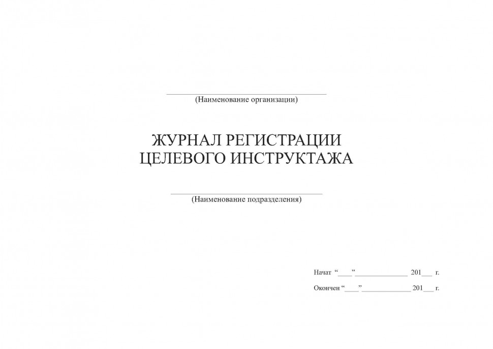 Журнал регистрации целевого инструктажа - применяется для записи, учета и регистрации сведений о лицах прошедших инструктаж и о руководителях проводивших инструктаж по охране труда. 48 страниц