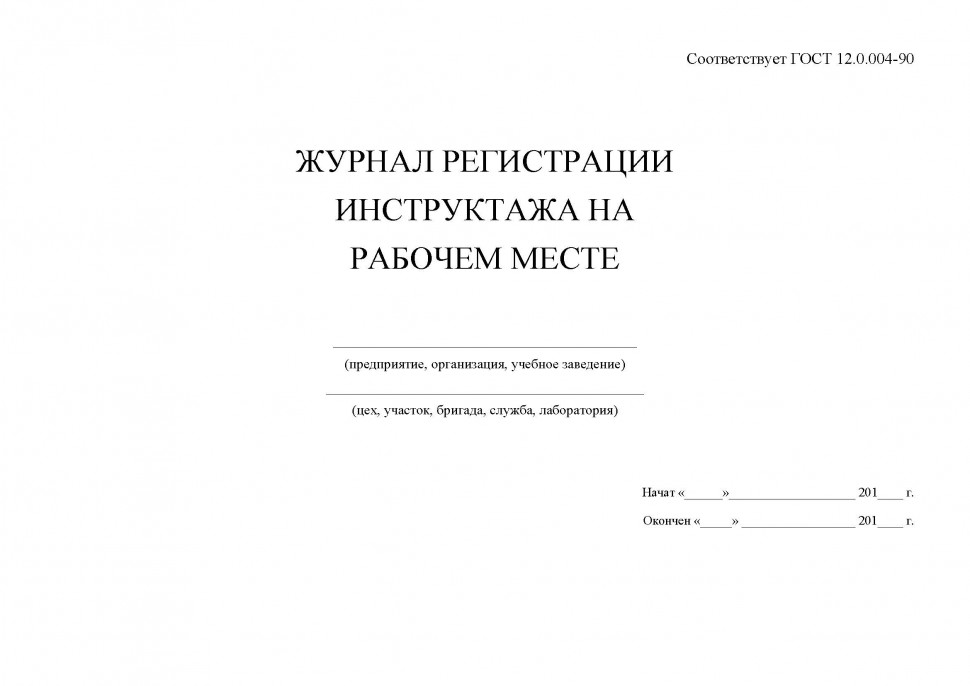 Журнал регистрации инструктажа на рабочем месте – это журнал установленной формы (основание ГОСТ 12.0.004-90 «ССБТ Организация обучения безопасности труда»), в котором регистрируется проведение определенного вида инструктажа(первичный на рабочем месте, стажировка, повторный, внеплановый, целевой). 48 страниц