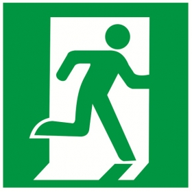 Над дверями (или на дверях) эвакуационных выходов, открывающихся с правой стороны. На стенах помещений вместе с направляющей стрелкой для указания направления движения к эвакуационному выходу.