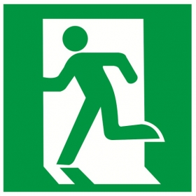 Размещается над дверями (или на дверях) эвакуационных выходов, открывающихся с левой стороны. На стенах помещений вместе с направляющей стрелкой для указания направления движения к эвакуационному выходу.
