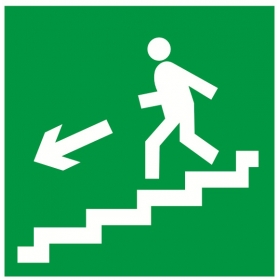 E14 "Направление к эвакуационному выходу по лестнице вниз (налево)"