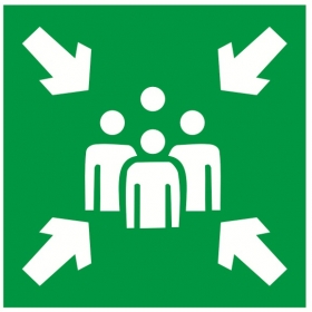 На дверях, стенах помещений и в других местах для обозначения заранее предусмотренных пунктов (мест) сбора людей в случае возникновения пожара, аварии или другой чрезвычайной ситуации