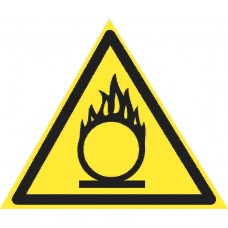 Устанавливается на дверях помещений, дверцах шкафов для привлечения внимания на наличие окислителя.