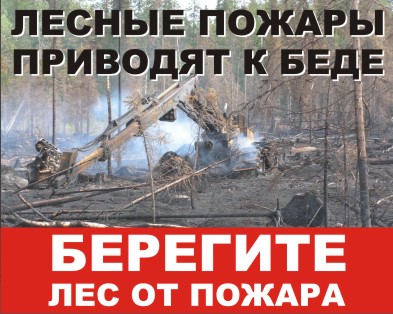 На аншлаге имеется надпись «Лесные пожары приводят к беде. Берегите лес от пожара» на фоне сгоревшего леса.
