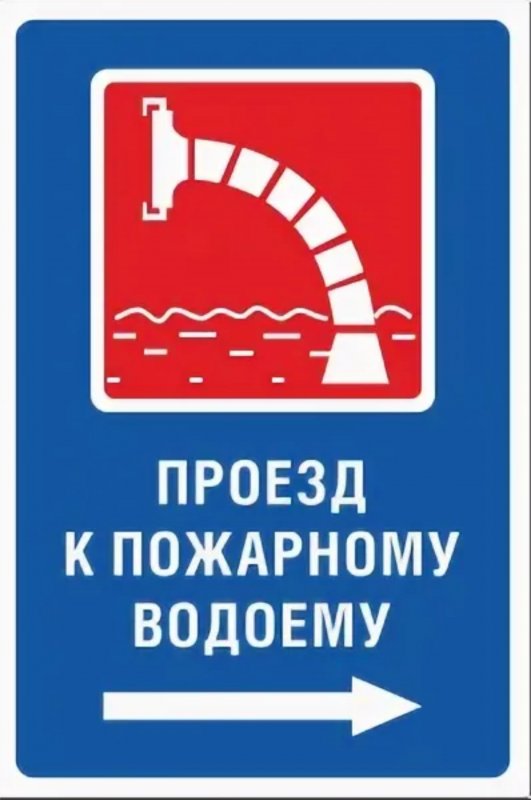 Знак безопасности "Проезд к пожарному водоему (вправо)", ширина 400 мм, высота 800 мм, поликарбонат 6 мм, светоотражающий