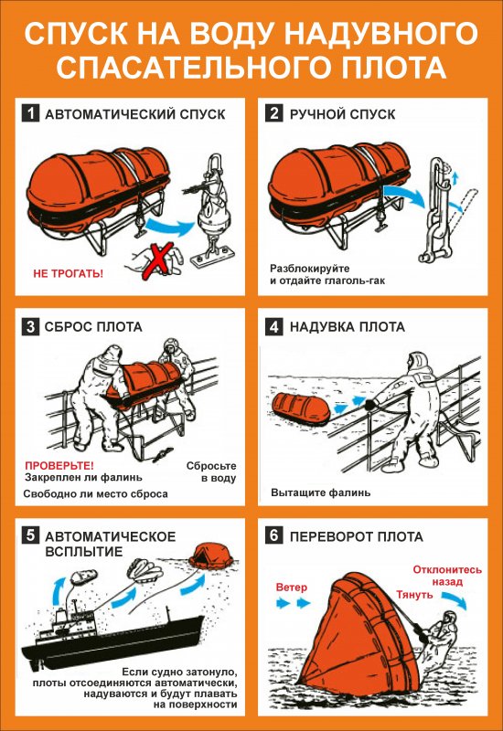 Плакат ИМО1 "Спуск на воду надувного спасательного плота". Формат: А3, А4.