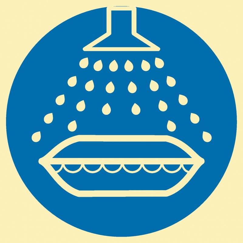 Знак IMO1.8 Включайте водяное орошение. Размер: 150х150мм. Материал: Фотолюминесцентный пластик, фотолюминесцентная пленка
