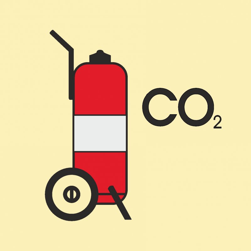 IMO10.101 Передвижной огнетушитель для двуокиси углерода. Размер: 150х150мм. Материал: Фотолюминесцентный пластик, фотолюминесцентная пленка