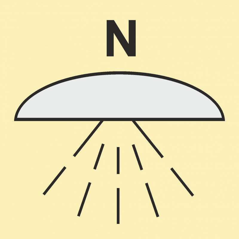 IMO10.109 Помещение или группа помещений, защищенных системой пожаротушения для азота. Размер: 150х150мм. Материал: Фотолюминесцентный пластик, фотолюминесцентная пленка