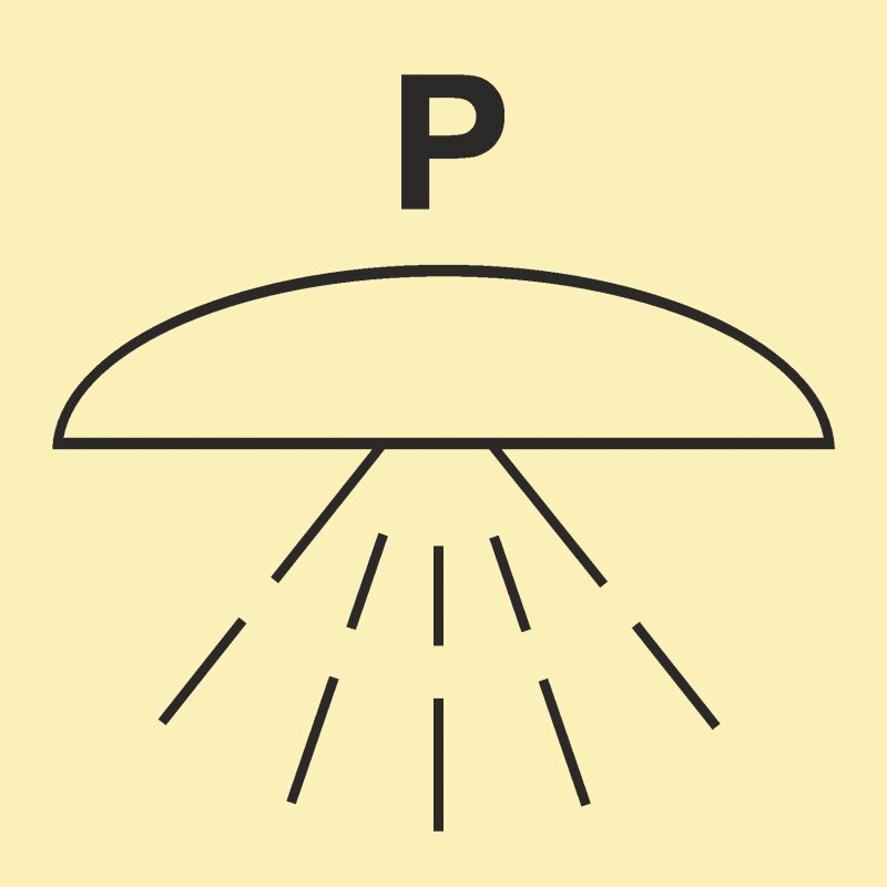 IMO10.112 Помещение или группа помещений, защищенных системой пожаротушения для порошка. Размер: 150х150мм. Материал: Фотолюминесцентный пластик, фотолюминесцентная пленка