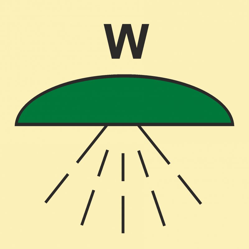 IMO10.113 Помещение или группа помещений, защищенных системой пожаротушения для воды. Размер: 150х150мм. Материал: Фотолюминесцентный пластик, фотолюминесцентная пленка