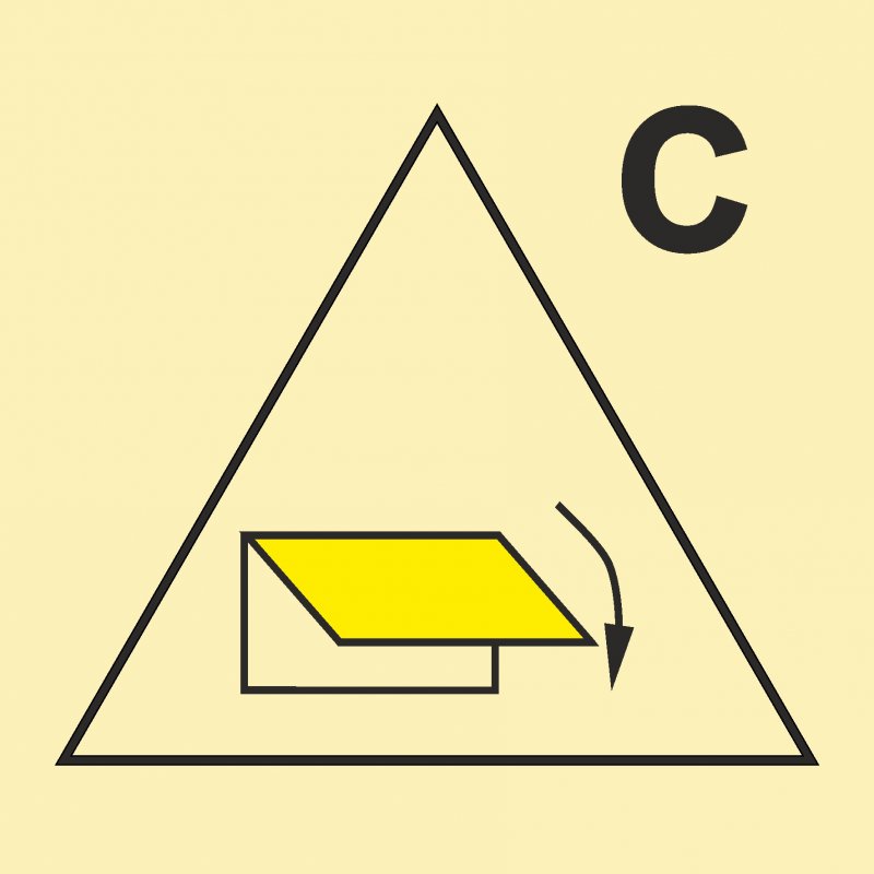 IMO10.45 Дистанционное управление устройствами закрытия приемных и выпускных отверcтий вентиляции для грузовых помещений. Размер: 150х150мм. Материал: Фотолюминесцентный пластик, фотолюминесцентная пленка