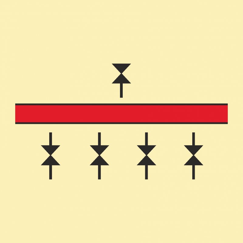 IMO10.88 Клапаны системы водораспыления. Размер: 150х150мм. Материал: Фотолюминесцентный пластик, фотолюминесцентная пленка