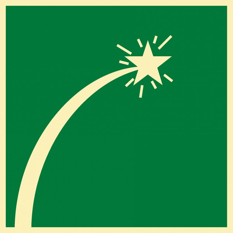 IMO2.17 Сигнальная ракета бедствия спасательного средства. Размер: 150х150мм. Материал: Фотолюминесцентный пластик, фотолюминесцентная пленка