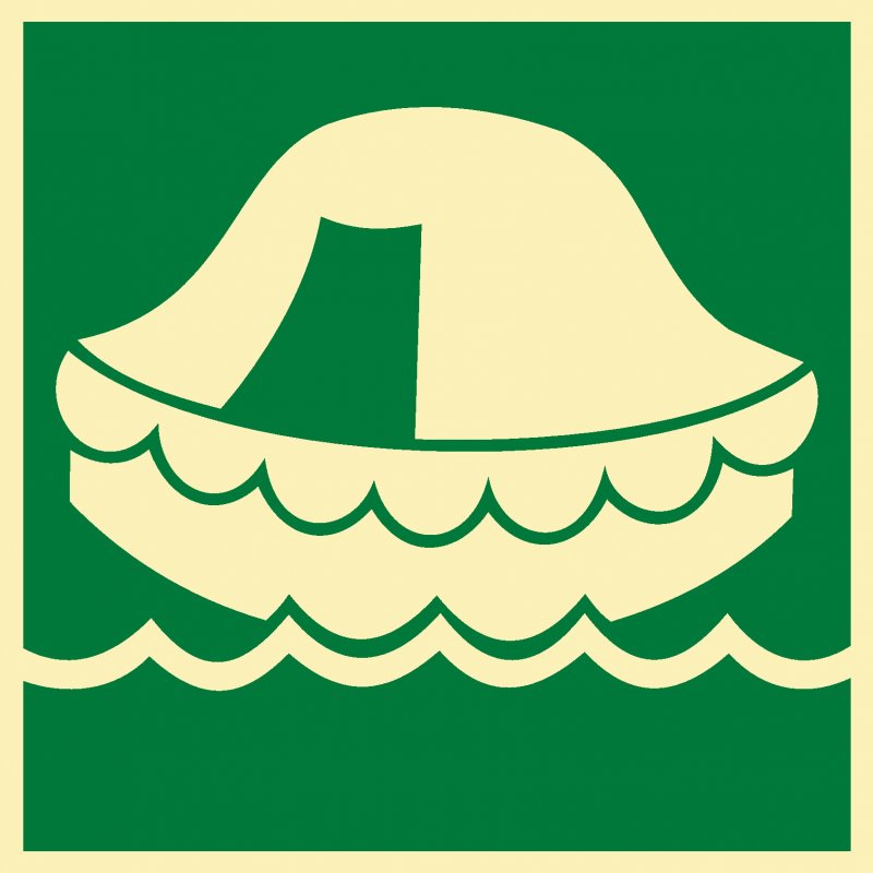 IMO2.3 Спасательный плот. Размер: 150х150мм. Материал: Фотолюминесцентный пластик, фотолюминесцентная пленка