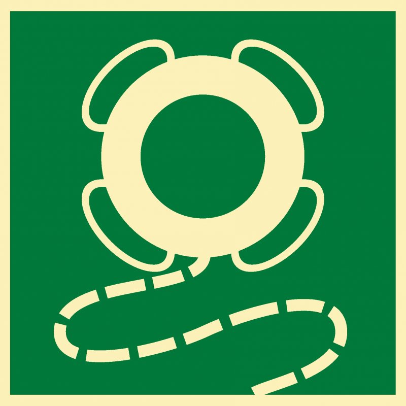 IMO2.8 Спасательный круг с линем. Размер: 150х150мм. Материал: Фотолюминесцентный пластик, фотолюминесцентная пленка
