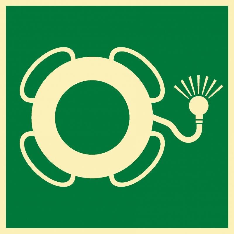IMO2.9 Спасательный круг с огнем. Размер: 150х150мм. Материал: Фотолюминесцентный пластик, фотолюминесцентная пленка