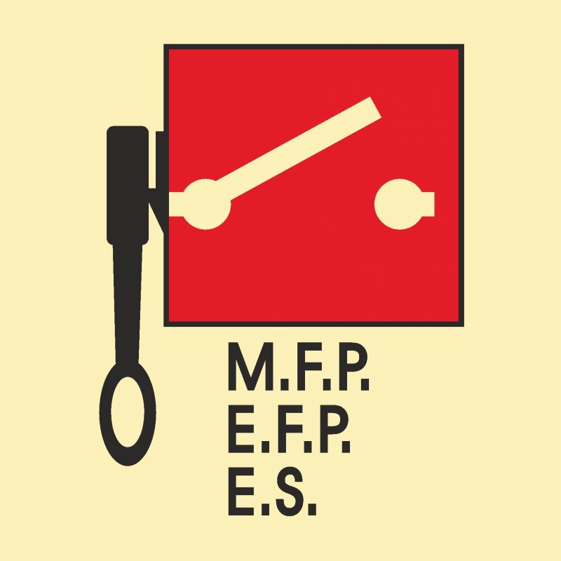 IMO3.20 Дистанционно управляемые пожарные насосы или аварийные выключатели. Размер: 150х150мм. Материал: Фотолюминесцентный пластик, фотолюминесцентная пленка